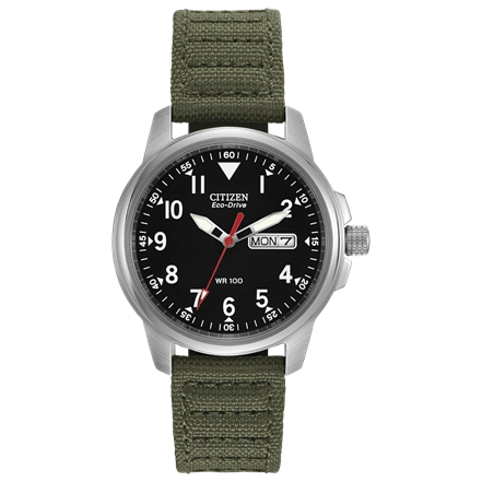Citizen Chandler Black Dial Green Nylon Strap Day-Date 37mm Eco-Drive