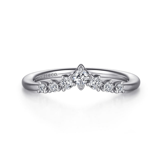 Curved 14K White Gold Princess Cut and Round Diamond Anniversary Band