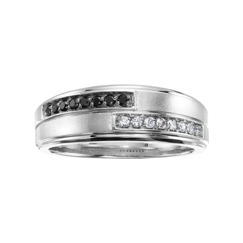 10 karat Canadian Certified Gold enhanced black diamond gents ring set with 0.24 carat total weight enhanced black diamonds & diamonds