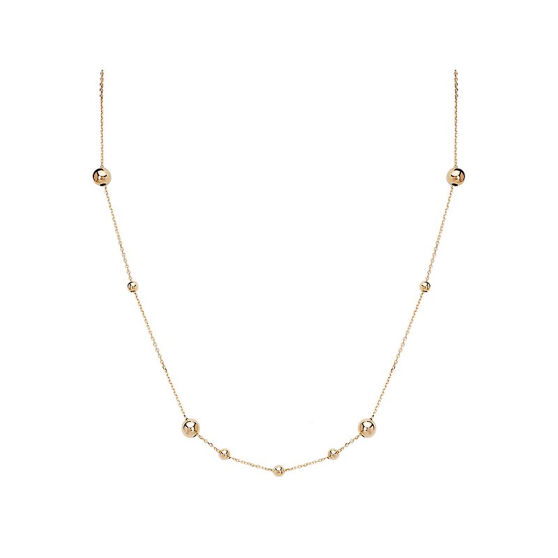Italian 14kt yellow gold necklace features multiple size gold beads. Adjustable 16.75 to 18 inches.