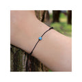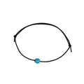 Italian 14kt gold ladybug bracelet features a blue ladybug, symbolizing peace, on the adjustable black cord.