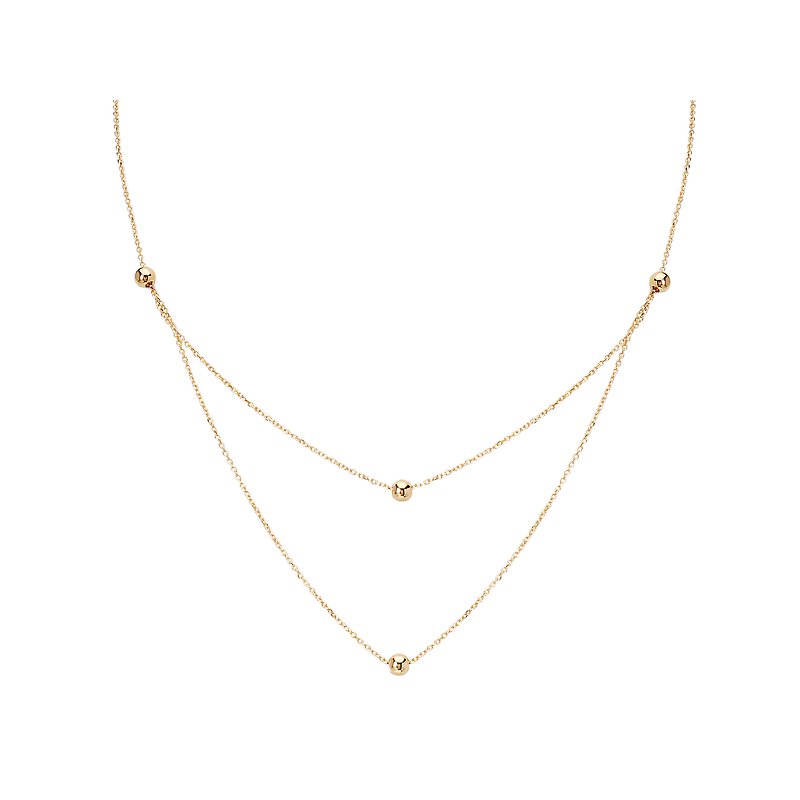 Italian 14kt yellow gold double layer necklace with gold bead accents. Adjustable 16 to 18 inches.