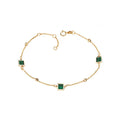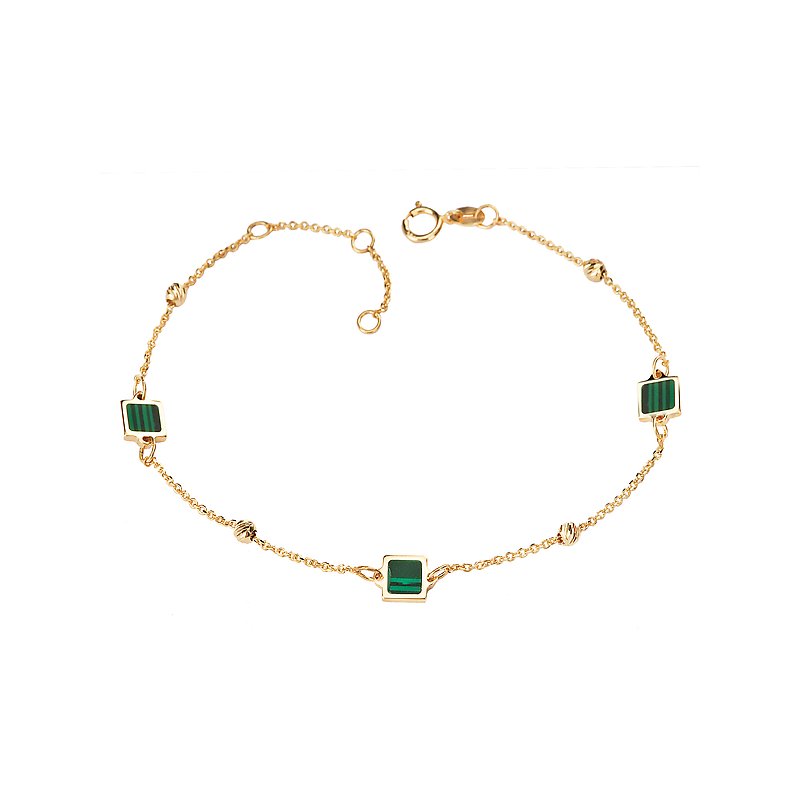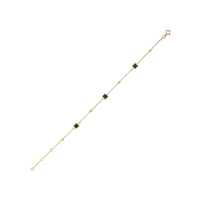 14kt yellow gold Italian chain bracelet with 3 square malachite gems. Adjusts from 6.5-7.5.