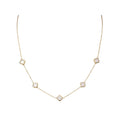 14kt yellow gold Italian necklace with five clover shaped mother of pearls. Adjusts from 16-18.