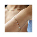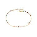Italian 14kt yellow gold chain bracelet is spaced with faceted multi-color tourmaline beads. Adjustable 6.5 to 7.5 inches.
