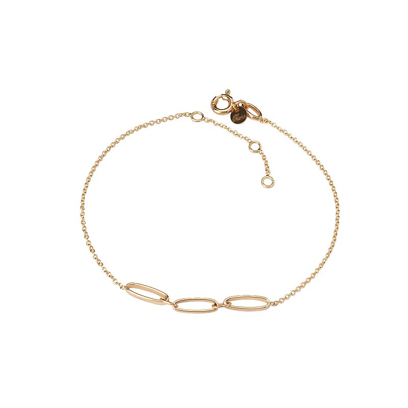 Three dainty links adorn this Italian 14kt yellow gold chain bracelet. Adjustable 6.5 to 7.5 inches.