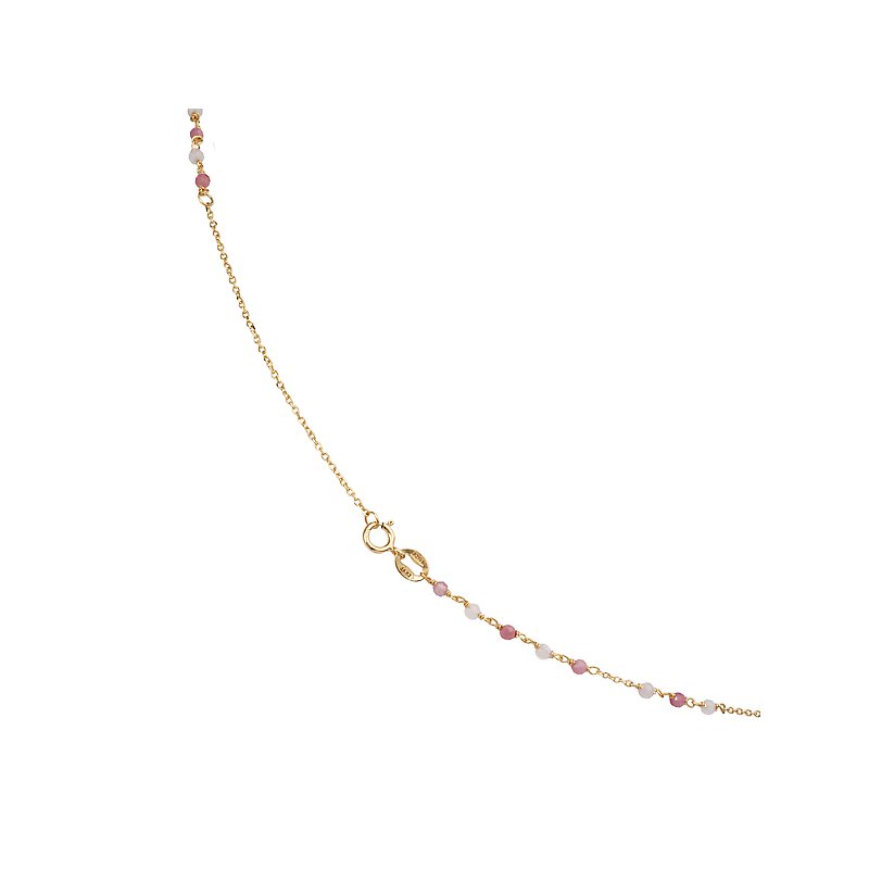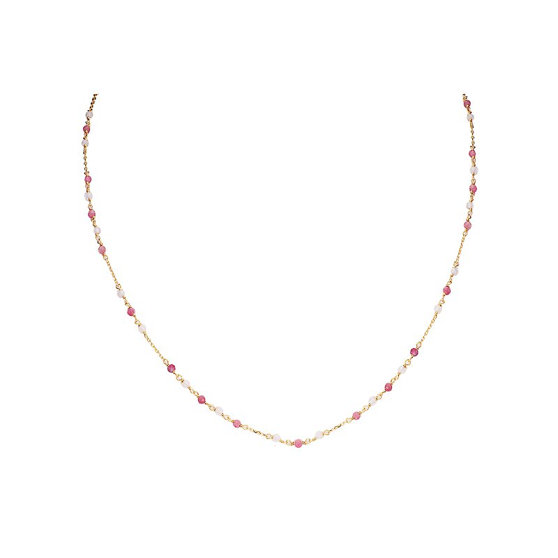 Italian 14kt yellow gold necklace is spaced with faceted pink quartz and tourmaline. Adjustable from 16 to 18 inches.