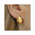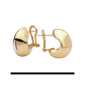 Italian 14kt yellow gold hollow drop shapped earrings with a high polished front and omega clip. 19x11.5mm