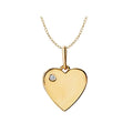 This is a 14kt yellow gold heart shaped pendant with a dainty round diamond set toward the top. (D .02 carat total weight) This is a pendant only, chain is sold separately.