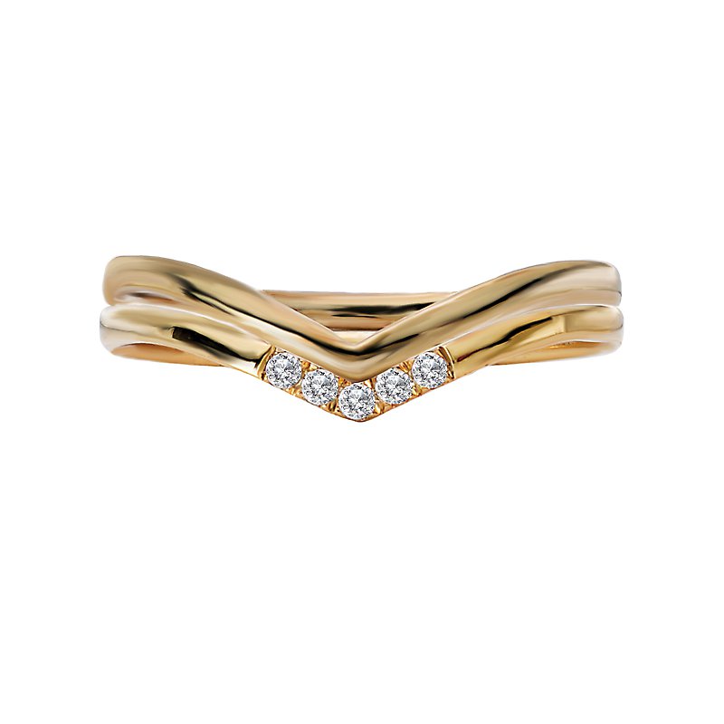 Beautiful 14kt yellow gold V shaped band with sparkling round diamonds. (D .05 carat total weight) This ring can be stacked stylishly with 113894-Y or worn alone.