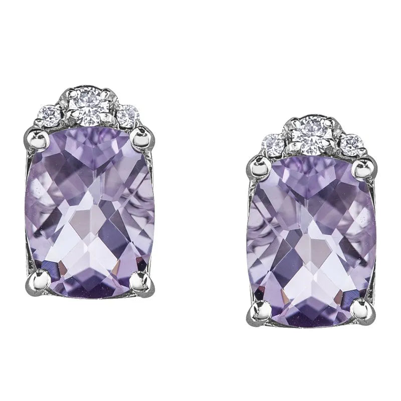 10 karat Canadian Certified Gold pink amethyst earrings set with pink amethyst and 0.03 carat total weight diamonds